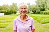 Evelin Willner vor dem Lehrgarten für Futterpflanzen in Malchow